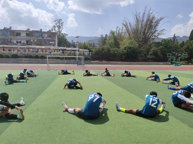 龙乃足球队正在进行训练前的热身活动