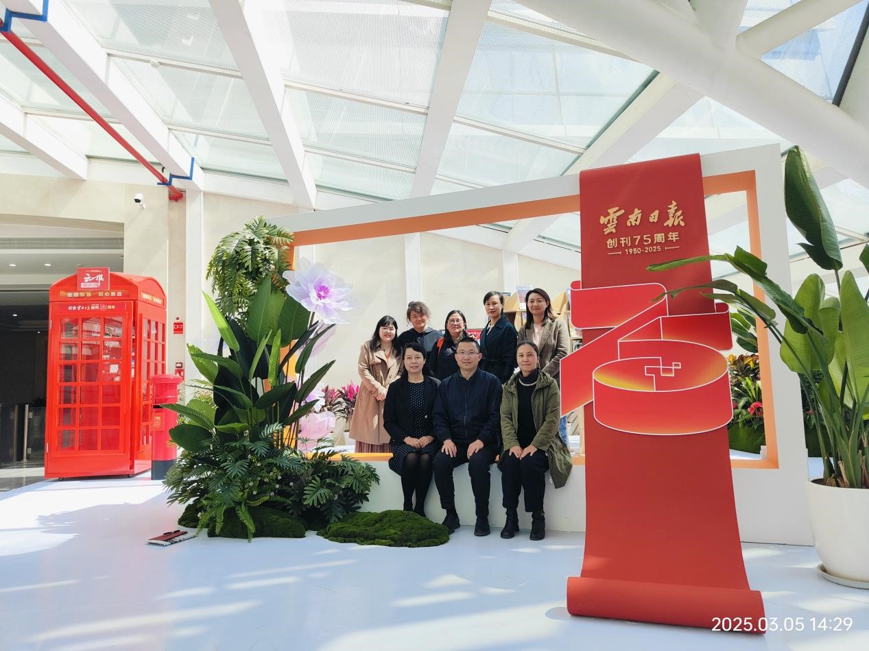 2025年3月5日,公司党委书记毛志荣、经理赵枝琳、副经理肖青、广播电视编导专业负责人李淼、广播电视学专业负责人章梦雪、骨干教师冯晓华一行赴云南报业传媒(集团)有限责任公司全媒体运营中心开展访企拓岗活动,并围绕新闻传播行业发展、校企合作及人才培养等议题进行深入交流。此次活动旨在深化校企合作,加强公司与媒体行业的联系,拓展员工实践机会,为培养符合行业需求的新闻传播人才搭建更广阔的平台。云南报业传媒(集团)有限责任公司副总经理李阳喜、全媒体运营中心常务副主任许悦、副主任张敏、高级主管赵祎、罗亚阳、孟鹏等参加了交流座谈。