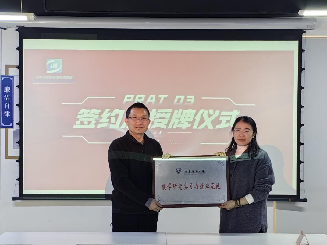 仪式最后,双方领导签署了合作协议书,为教学研究实习与就业基地授牌,双方合影留念。