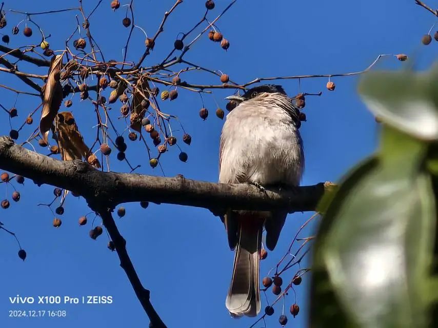 将数米外枝头上的小鸟羽冠纤毫毕现