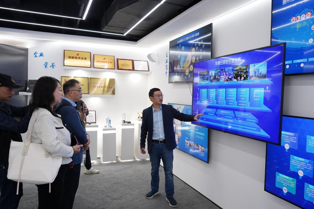 随后,华栖云徐嘉诺详细演示及介绍了AIGC智能传媒实训平台的构建理念、功能特色和应用效果。该平台不仅能够模拟传媒行业的日常工作流程,还能根据员工的学习进度和能力,提供个性化的训练方案,帮助员工掌握最新的传媒技术和职业技能。在华栖云工作人员的引导下,调研团队成员体验了智能实训平台的部分功能,沉浸式感受华栖云研发的智慧教学解决方案和实际应用。