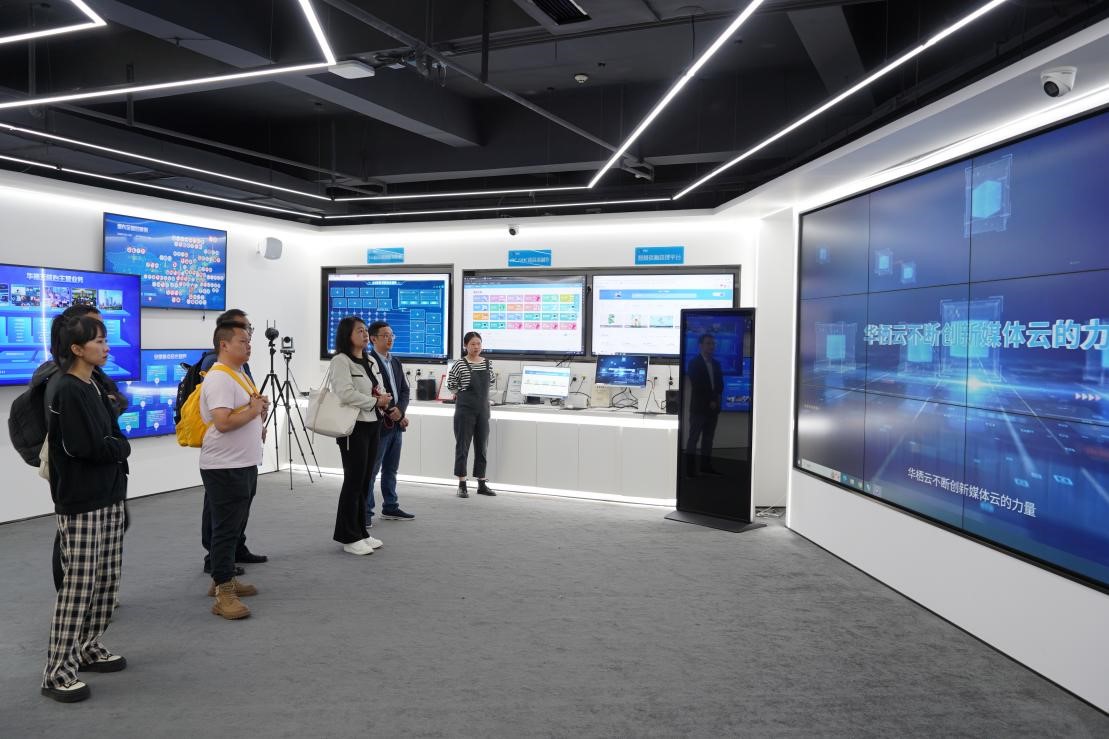 公司一行首先参观了华栖云的办公环境及媒体制作实验室,了解了公司在大数据、人工智能等领域的技术应用和产业发展情况。华栖云田可向调研团队介绍了公司发展历程、基本情况等相关信息,同时对华栖云在智能媒体处理能力和传媒教学实践创新方面进行讲解。