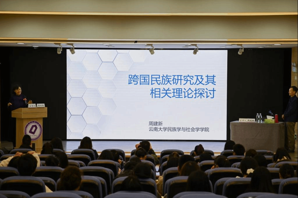 云南大学民族学与社会学公司周建新教授担任第一讲《跨国民族研究及其理论探讨》主讲人,由公司陆双梅教授主持。