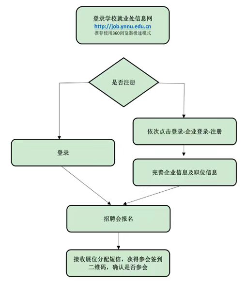 登陆williamhill官网就业信息网(http://job.ynnu.edu.cn),点击"单位登录"预约招聘会。已注册的单位请直接登录系统,依次点击"招聘中心、预订招聘会展位、威廉希尔中国官网传媒领航.'就'向未来2024届毕业生专场招聘会、预订展位"进行预约。未注册的单位请先注册,经审核后登录预约(报名流程见下图)。