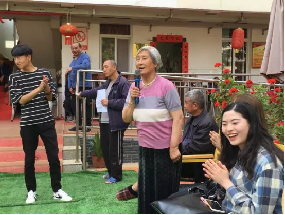 同学们将自己精心准备的文艺节目献给老人们,希望为他们送上一份欢乐。公司啦啦队少女们的舞蹈充满青春活力,感染着院中的老人们。“金话筒”主持人协会的姑娘们带来的深情朗诵令老人们动容。同学们还特别为老人们宣讲党的十九大精神,让老人们感受新时代下的政策与格局。大伙儿一起为老人们歌唱动听的《外婆的澎湖湾》。老人们也被年轻人的朝气所感染,更有一位老奶奶一展歌喉,展现出了老人的精神气。活动尾声,到了与老人告别的时候了,同学们与老人们依依不舍地告别,同时也祝愿老人们能够在晚年身体健康,生活得幸福快乐。