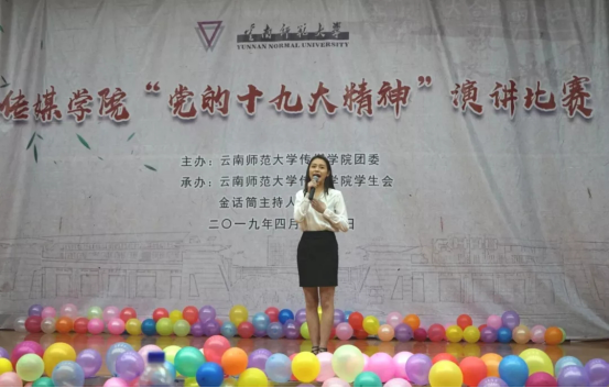 以《摆脱相似,重游少年》为题的演讲选手用活泼生动的话语,带我们看少年的光景,领会十九大精神引领下当代青年的担当,把台下观众带入群情激昂的氛围中。《青春是用来奋斗的》的选手在激情澎湃的配乐里,鼓励我们在青春里奋斗,在青春里发扬十九大精神,做优秀的青年人。以《不忘初心,逐梦前行》为题的选手从十九大精神里的不忘初心引申到我们每个人的初心,引人深思,发人深省。以《从乡村振兴看发展之路》为题的选手从三农问题为切入点让同学们细看十九大带来的影响和改变。以《传媒范儿》为题的选手立足所学专业,讲述新时代传媒人应该有的专业精神。以《青春喜迎十九大,不忘初心跟党走》为题的选手回顾了十八大以来国家取得的重大成就,深刻领会十九大精神在当代的作用。以《新时代新青年》为题的选手从近期四川省发生的火灾讲到自己的经历,从新时代的面貌讲到十九大精神,优雅的姿态,动听的言语,感染了在场的每一个人。
