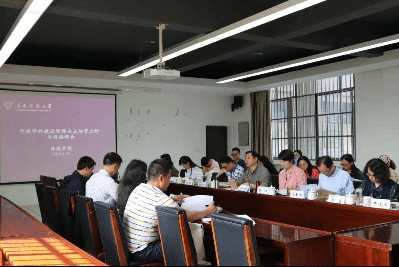 熊经理首先介绍了公司学科及专业建设情况,并重点就推进戏剧与影视学一级学科博士学位授权点培育工作中遇到的困难和存在的问题进行了说明。在随后的专项汇报中,阮艳萍教授从学科概况、申报指标、对标单位分析和潜在竞争高校等方面具体解读了学位授权点培育情况及申报一级博士学位授权点尚存的不足。