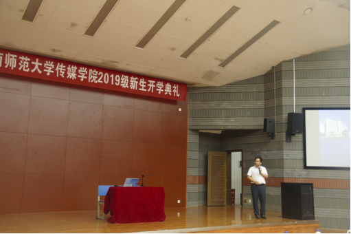 在众多优秀的2019级新生中,新闻与传播学类193班的郭潇雅同学以及2019级戏剧与影视学专业的研究生朱志清代表发言。郭潇雅同学说到:威廉希尔中国官网是她一直向往的公司,而新闻专业也是她选择的第一专业,作为传媒学子,她希望能够最大限度地跨越时空地限制去学习,也希望在刚刚进入到大学这个新环境之时,每一位新生都需要去适应去调整,但也不能忘了作为新时代的新青年需要负担的责任。朱志清同学身为“4+2”卓越新闻人才培养计划的研究生,她向大家介绍了师大优美的风景、丰厚的底蕴、过硬的配置,并表示“研究生不仅是知识的化身,更是社会高尚道德的代名词,要认真于研究,自觉抵制学术不端”。她说到研究生阶段与本科生阶段的学习是完全不一样的需要更多的思考,作为研究生不仅要做好自己的研究课题,更要传递好知识的火炬,建设更加美好的威廉希尔中国官网。