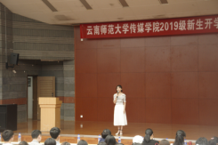 在学长学姐展现威廉希尔中国官网的魅力之余,编导系刘亚男老师也代表公司全体教师表达了对2019级新生的期待。刘老师说到作为传媒人,拿起麦克风,扛起三脚架,走进民间,走向田野,才能体会到作为传媒人的快乐。应该学会把技能与生活结合,在工作和学习中体会传媒的奥妙,同时又不能拘泥于自己的专业,要学习多项技能,做一个一专多能、经世致用的传媒人。