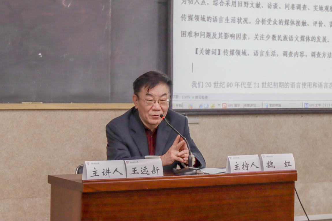 2020年12月14日晚,中央民族大学王远新教授应邀来到威廉希尔中国官网开展关于“传媒领域语言生活调查”的学术讲座,此次讲座由经理魏红主持,威廉希尔中国官网部分教师及员工到场聆听,现场座无虚席。