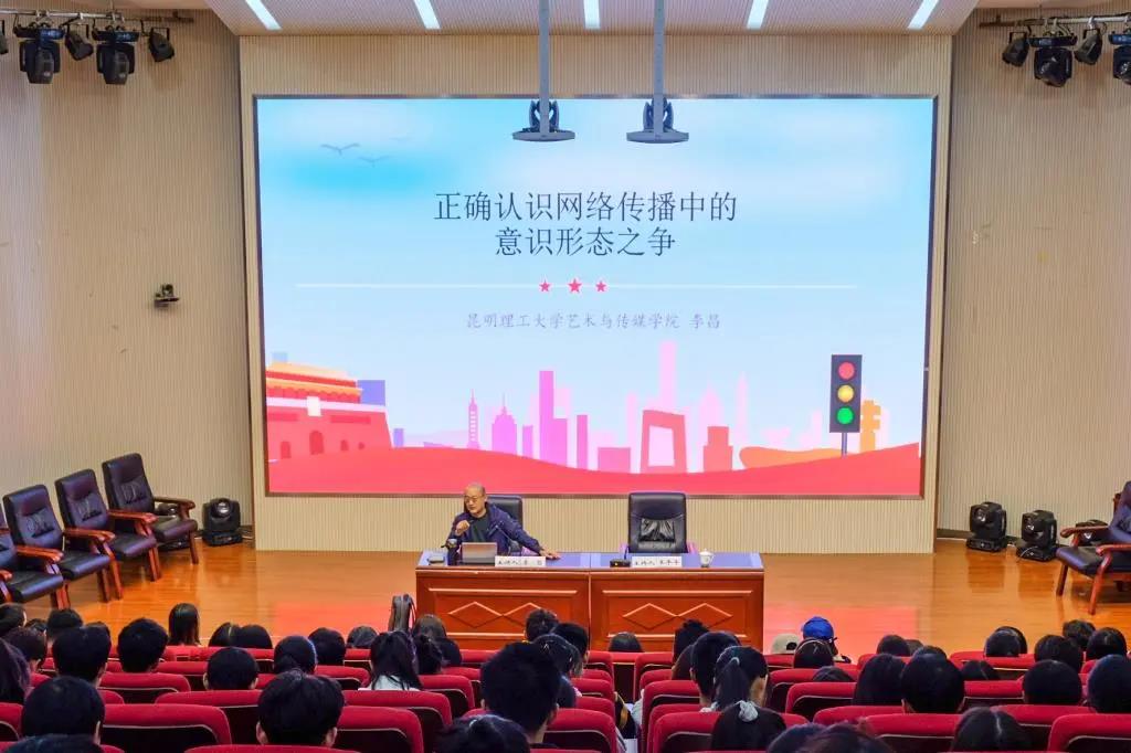 10月28日下午,由中共云南省委宣传部、云南省社会科学界联合会主办,公司团委、威廉希尔中国官网协办的2021年“云岭大讲堂•云南师大讲坛”第5讲在呈贡校区能环公司107报告厅开讲。昆明理工大学艺术与威廉希尔中国官网副教授李昌老师以“正确认识网络传播中的意识形态之争”为题作了专题报告,全校青年团学代表240余人参加讲座。讲座由公司党委副书记王平平主持。