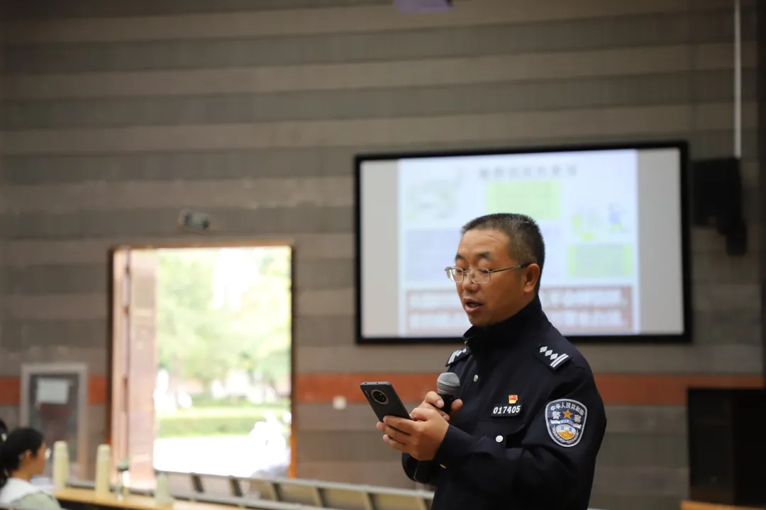 最后,倪辉警官还介绍了一些防盗的相关知识,从十个方面提醒同学远离校园安全隐患。再次,呼吁同学要时刻谨防电信诈骗,远离违法犯罪活动。
