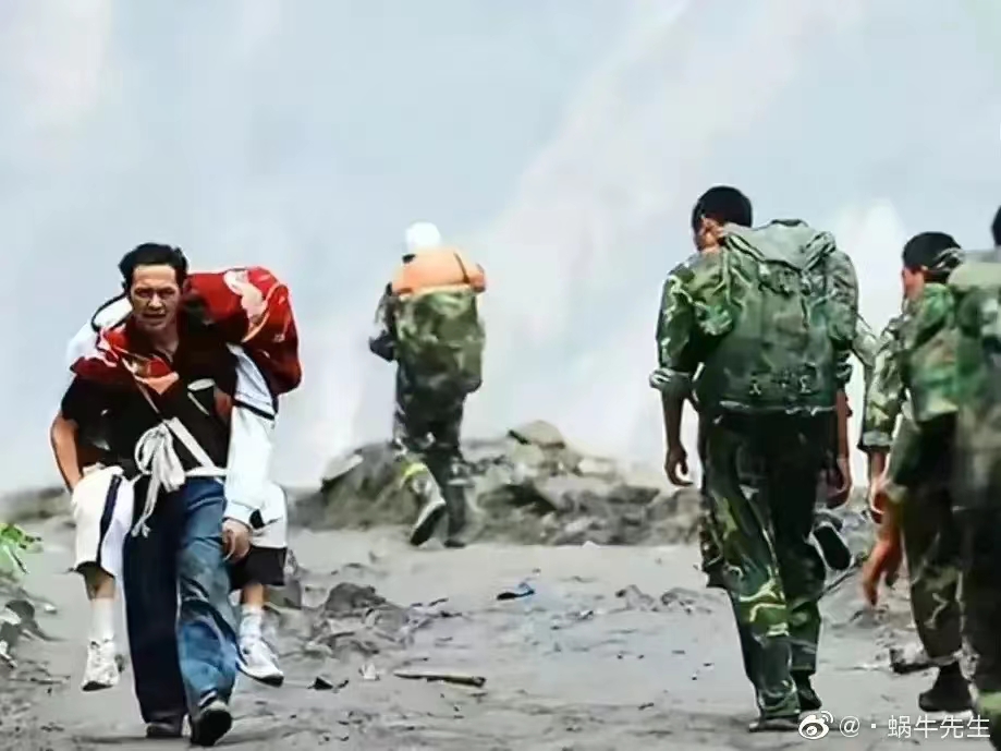 这张照片是我在网络上看到的,是2008年汶川地震,一个父亲背着儿子的遗体徒步25公里回家。