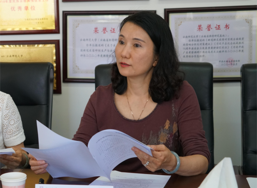 舆情基地办公室主任陆双梅及教师团队介绍舆情基地工作合作机制、成果及未来工作规划。