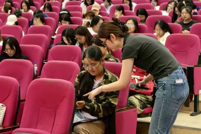 之后,教学事务办公室主任王琳老师对本科生选课、学分、成绩、教材订购、各类比赛等教学事务做了全面的介绍。在此基础上,路琦老师针对毕业标准、转专业、休学、复学、见习、实习等问题进行了详细的补充,强调了员工未来的学习中的注意事项。针对选课这一新生最为关注的问题,员工代表对如何使用教务网络管理系统对选课、课程成绩查询、考试安排等问题,向新同学们做了详细的讲解。
