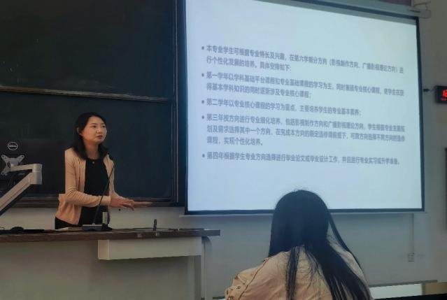 随后,新闻传播系、语言播音系、编导系的负责教师分别至101、103、104教室为各专业员工进行专业及生活情况的介绍,从学习纪律、培养模式、培养目标等方面对本专业员工的发展提出了较为详细的要求。