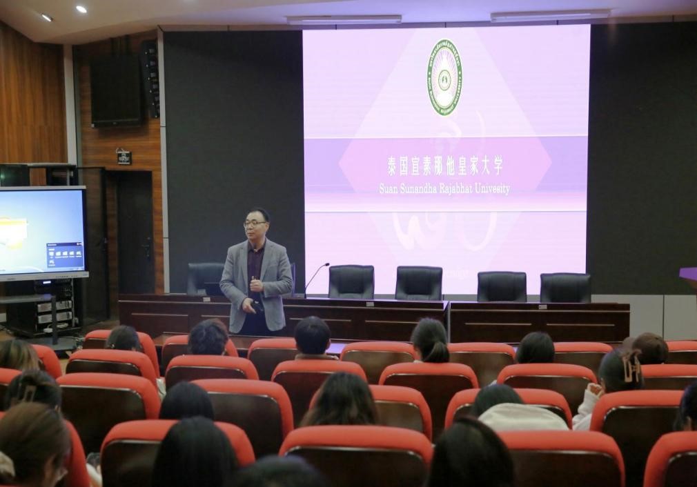 其次,曾前往泰国攻读博士学位的方盈盈老师也做了留学经历的分享,从泰国的气候、文化、地域、饮食、学业等方面,使同学们对泰国宣素那他皇家大学有了更加全面的感性认知,并祝愿同学们在未来的道路上心怀梦想,勇往直前,在成长的旅途中“勇于尝试,摘得佳果”。