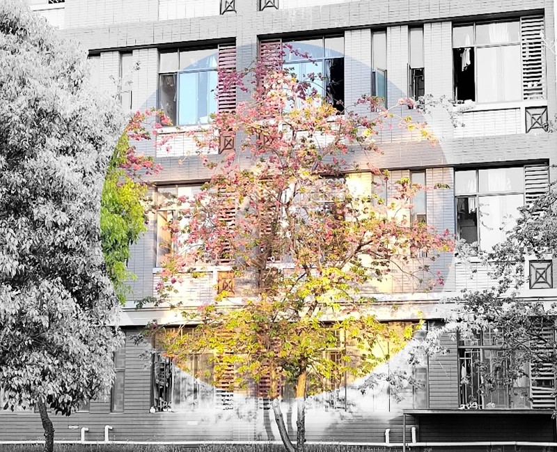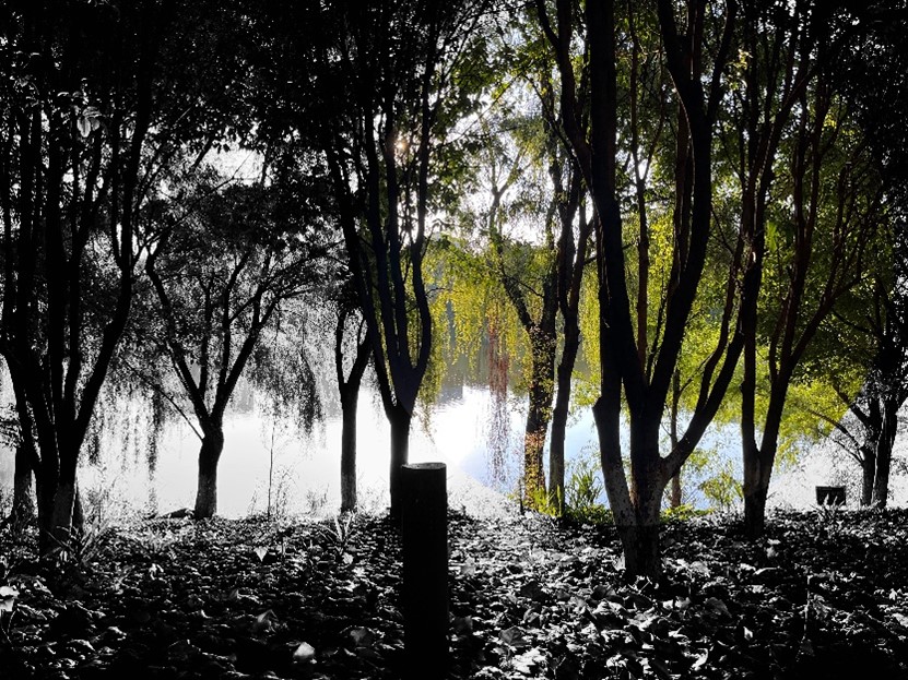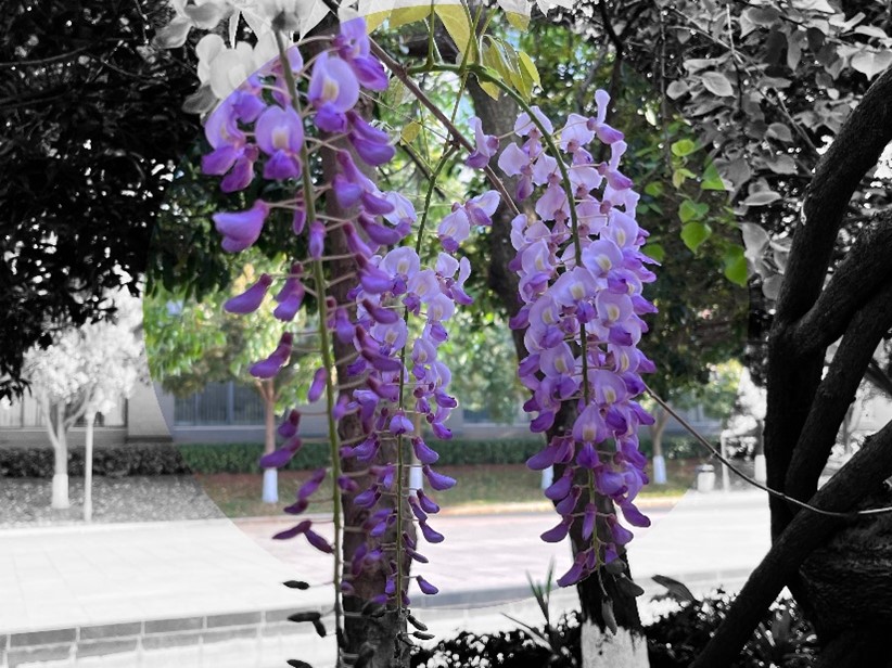 走进师大校园,紫藤长廊上一串串紫色的花朵与翠绿的新叶相映成趣,宿舍楼前的樱花树在夕阳的映照下更显瑰丽,校园中处处透露的绿意和树林深处传来的鸟鸣,草长莺飞,风清雨润,处处给人清新明朗之感。