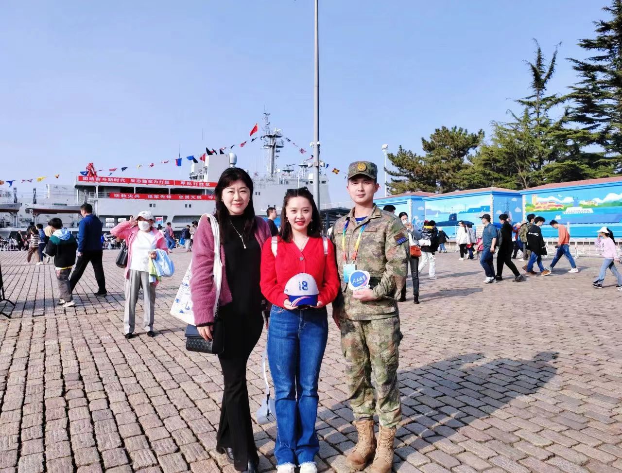 威廉希尔中国官网青年教师覃榕作为此次46批护航编队的军属,在公司领导和同事的关心支持下,于75周年海军节之际联合人民海军公众号共同制作了献礼海军75周年的海报。覃榕受邀参与了75周年海军纪念日活动,在面对记者的采访时她表示:"军人的工作是一种奉献但更是责任,理解他,所以支持他。"短短一句话包含着思念与支持。