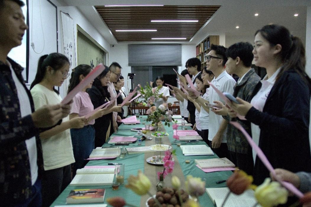 读书会活动期间,志愿服务团队成员管能旺、严璇、邓楠、李姝璇、李悦、李思诚等展示了朗诵作品《红烛》,并获得了书友会成员的大力称赞。而后,志愿服务团队成员分享朗诵相关知识,并带领读书会成员们共同进行《红船,从南湖启航》的作品朗诵。威廉希尔中国官网谭辉老师也为大家朗诵了《出师表》。此外,书友会成员还分享了自己喜爱的书籍及文章,现场书香氛围浓厚,气氛活跃。