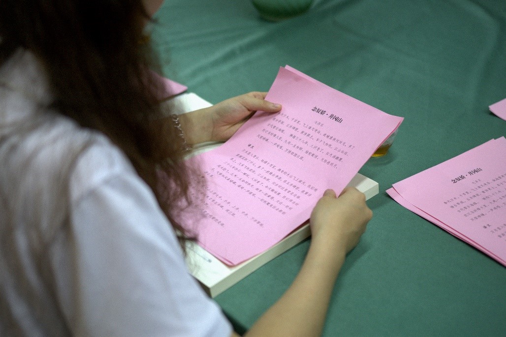 读书会开始,书友会成员及志愿服务团队依次进行了自我介绍,书友会对志愿服务团队的参与表示热烈欢迎。随后,主持人带领大家诵读《党旗下》《七律·人民解放军占领南京》,并对其译文进行深度解读,成员们各抒己见,表达了自己对诵读作品的感悟。