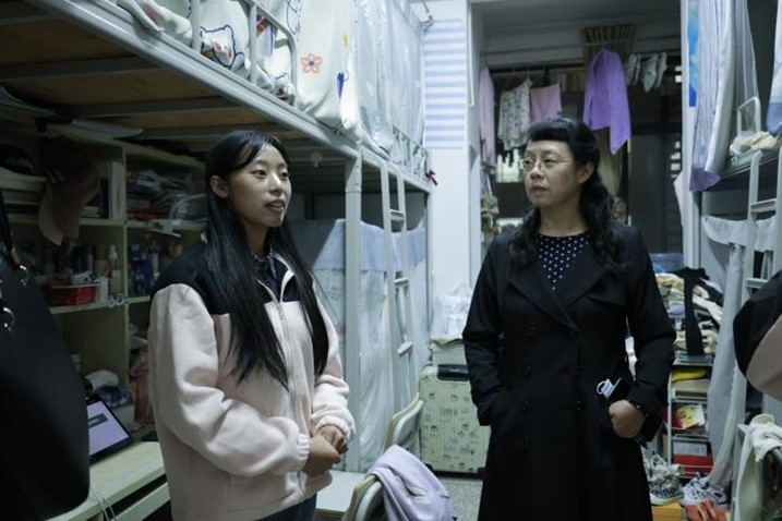 在走访到2024级宿舍时,毛志荣书记悉心关切新生们对学习和生活的适应情况,细致地询问并解答疑惑,鼓励他们要勇敢迎接新环境的挑战,科学规划老员工活,不断提升自我。随后,老师们了解了各寝室的文化建设,嘱咐同学们要珍惜彼此的友谊,互相理解,互相包容,营造融洽的宿舍氛围。