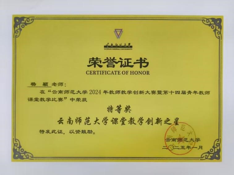 特等奖:杨颖 williamhill官网课堂教学创新之星