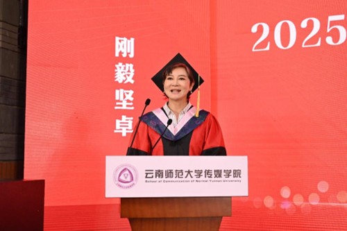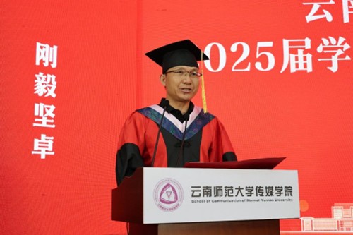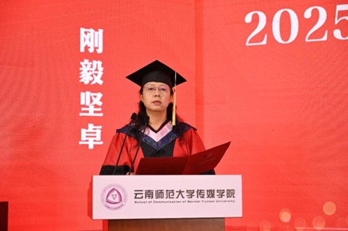 张齐老师在致辞中希望同学们永葆学习之心,做正直善良有担当的传媒人。李响同学深情回顾了大学四年的成长历程,她选择在毕业后扎根基层,服务群众。梁雁同学则用“初遇、选择、致谢”诠释自己与师大相守的七年光阴,感恩母校培养,将带着“刚毅坚卓”的校训奔赴山海。