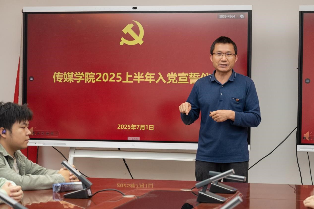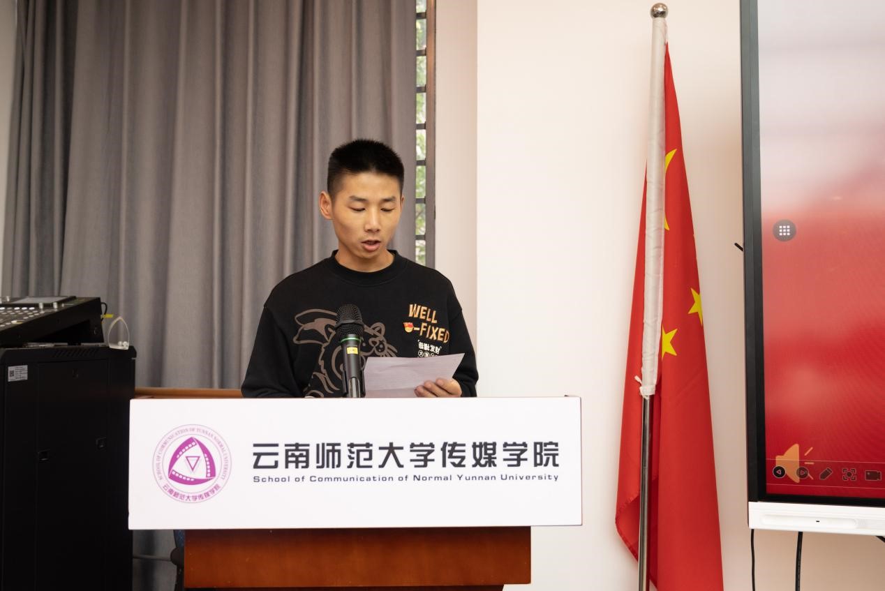 员工第五党支部党员代表、2023级新闻与传播研究生周晓虎同志发言,与新发展党员们分享入伍经历与入党动机,用实际行动诠释青年担当和党员责任。他表示,成为党员,就有责任、有义务把有限的生命无限地投入到为人民服务中。作为传媒生,我们要不断地增强脚力、眼力、脑力、笔力,崇德向善,要用鲜活案例和群众语言传递党的声音,担当起新时代新闻传媒人的职责使命。今日重温入党誓词,他祝愿伟大的党永葆青春,伟大的祖国繁荣昌盛。