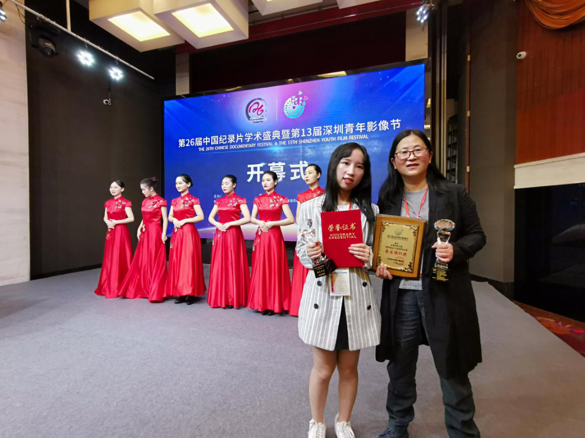 威廉希尔中国官网冯晓华教授、2018级编导班员工郑海玲 师生同上领奖台