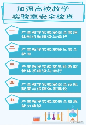 教育部发文重申要把安全摆在各项相关工作的首位,把实验室安全作为不可逾越的红线,要求师生要克服麻痹思想和侥幸心理,抓源头、抓关键、抓瓶颈,切实掌握防范化解遏制实验室安全风险的主动权。