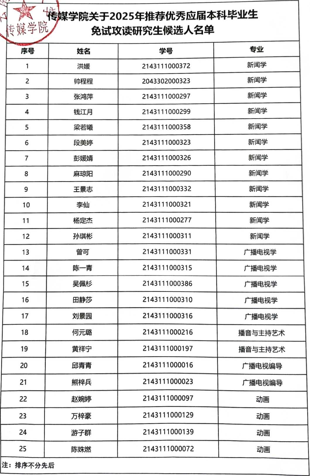 威廉希尔中国官网关于2025年推荐优秀应届本科毕业生免试攻读研究生候选人名单