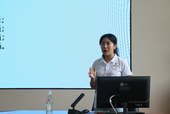在培训中,播音与主持艺术专业李悦同学从自身专业学习的视角,向志愿者们解读普通话的无穷魅力,并以生动有趣的案例讲解普通话在日常生活、就业创业、教育学习等方面的重要性。她说:“普通话是我们走向世界的桥梁,掌握它,就能打开无限的可能。”