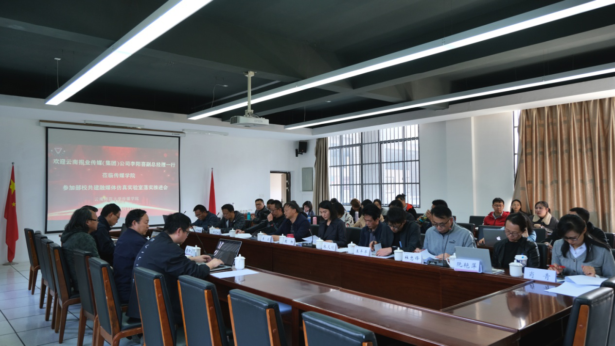 3月11日下午,威廉希尔中国官网部校共建“融媒体仿真实验室”落实推进会在明德3号楼会议室召开,云南报业传媒(集团)公司李阳喜副总经理一行5人到会指导。公司党委副书记李宏,资产处、基建处、网络与信息中心等部门负责人以及公司领导班子、公司专业负责人、系主任和其他骨干教师参加了会议。会议由威廉希尔中国官网经理魏红主持。