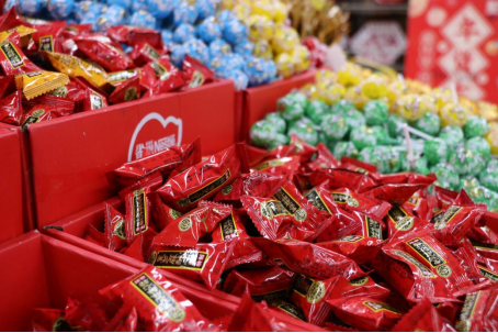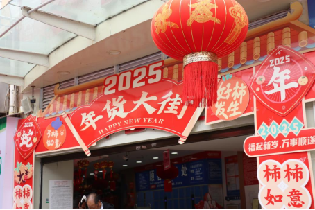 春节前夕,走进宾川县城,在百惠超市门口可以看到高悬的大红灯笼,两侧贴满新春对联。走进超市,水果糖、小面包、巧克力、坚果大礼包……琳琅满目的年货透出新年的气息。