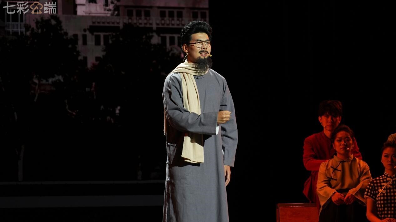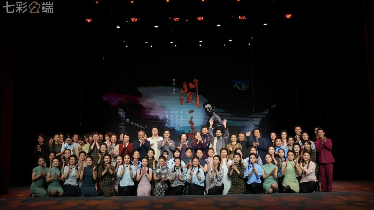 舞台广播剧《闻一多》以抗日战争至解放战争为历史背景,通过创新融合广播剧声效艺术与舞台视觉呈现,为观众打开了一扇穿越时空的窗口,带领大家重返烽火岁月,深刻感受一代学人的铮铮铁骨与家国情怀。