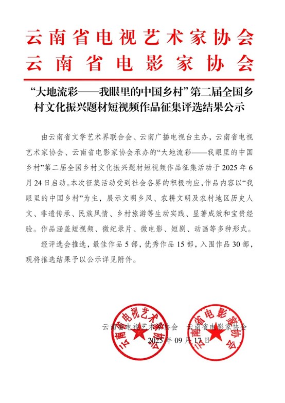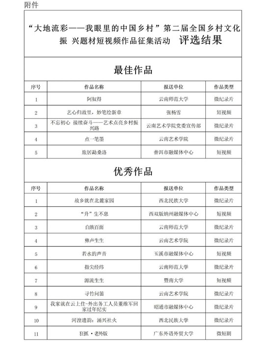 转载•通知 | “大地流彩——我眼里的中国乡村”第二届全国乡村文化振兴题材短视频作品征集评选结果公示
